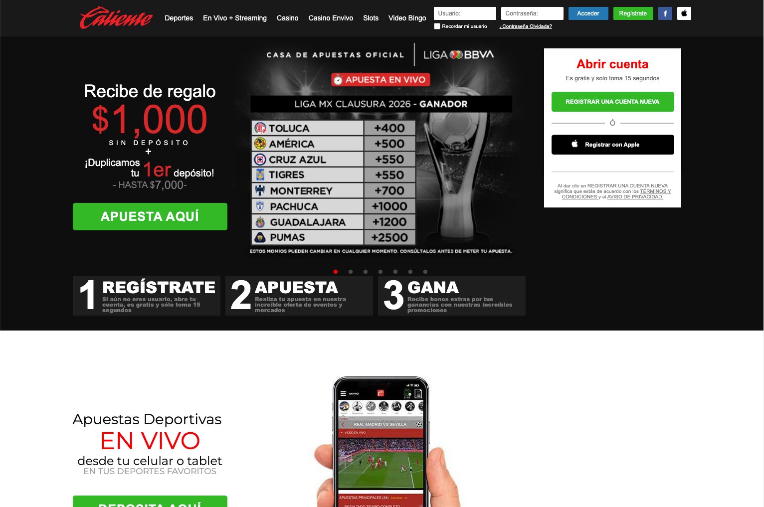 ¡No esperes más! Regístrate hoy mismo, haz tu primer depósito y empieza a disfrutar de todo lo que Caliente Casino tiene para ofrecer. ¡La emoción te espera!